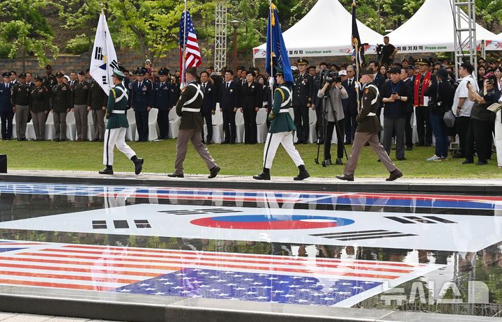 [오산=뉴시스] 김종택 기자 = 3일 경기 오산시 죽미령 평화공원에서 제75주년 유엔군 초전기념 및 미 스미스부대 전몰장병 추도식이 거행되고 있다. 2025.07.03. [email protected]