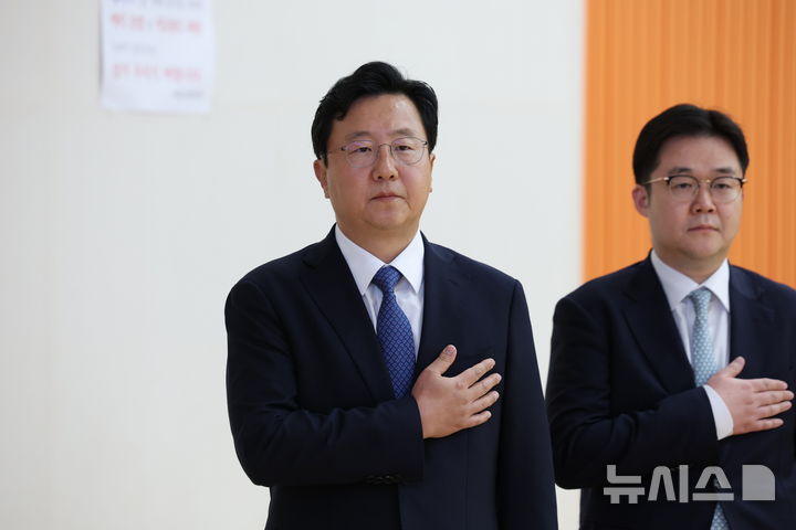 [서울=뉴시스] 김진아 기자 = 정진우 신임 서울중앙지검장이 4일 오전 서울 서초구 서울중앙지방검찰청에서 열린 제65대 정진우 검사장 취임식에서 국민의례를 하고 있다. 2025.07.04. [email protected]