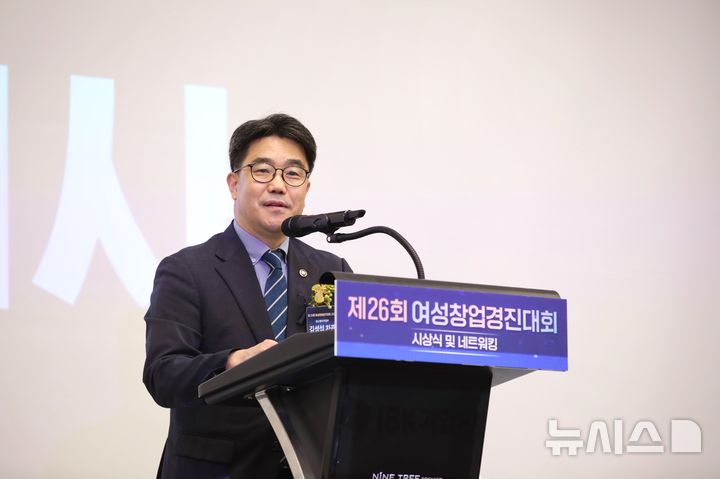 [서울=뉴시스] 김성섭 중소벤처기업부 차관이 4일 서울 종로구 나인트리 프리미어 로카우스 호텔에서 열린 '2025년 제26회 여성창업경진대회 시상식'에서 격려사를 하고 있다. (사진=중소벤처기업부 제공) 2025.07.04. [email protected] *재판매 및 DB 금지