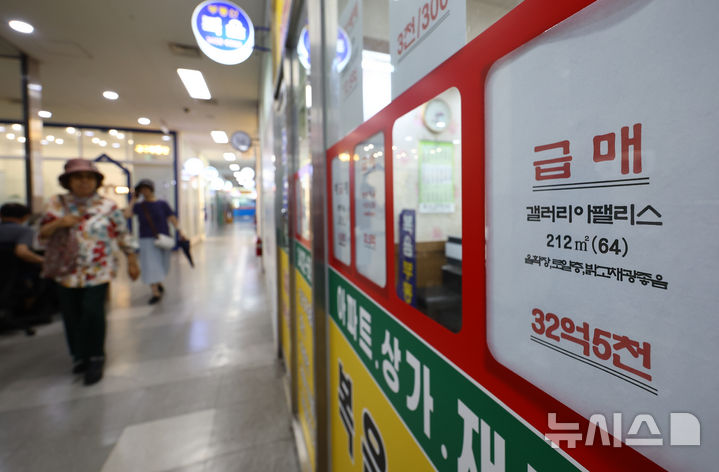 [서울=뉴시스] 황준선 기자 = 4일 서울 송파구의 한 부동산에 급매 매물 광고가 게시돼 있다.