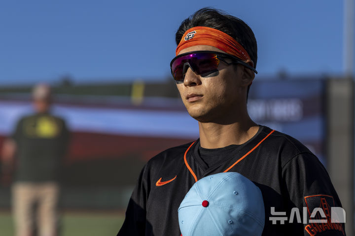[새크라멘토=AP/뉴시스] 샌프란시스코 자이언츠의 이정후가 4일(현지 시간) 미 캘리포니아주 새크라멘토 서터 헬스 파크에서 열린 2025 메이저리그 오클랜드 애슬레틱스와의 경기 중 국민의례를 하고 있다. 이정후는 4타수 무안타 1삼진을 기록했고 샌프란시스코는 2-11로 패했다. 2025.07.05.