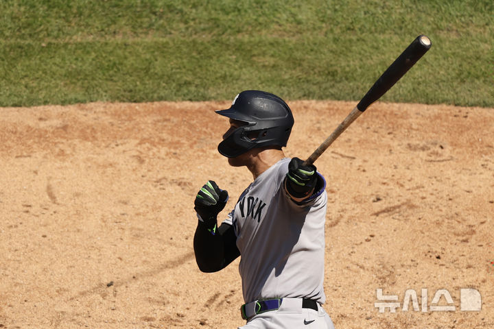 [뉴욕=AP/뉴시스] 뉴욕 양키스의 애런 저지(오른쪽)가 6일(현지 시간) 미국 뉴욕 시티 필드에서 열린 2025 메이저리그 뉴욕 메츠와의 경기 5회 초 2점 홈런(33호)을 치고 있다. 저지는 4타수 1안타(홈런) 3타점 1득점을 기록했고 양키스는 6-4로 승리했다. 2025.07.07.
