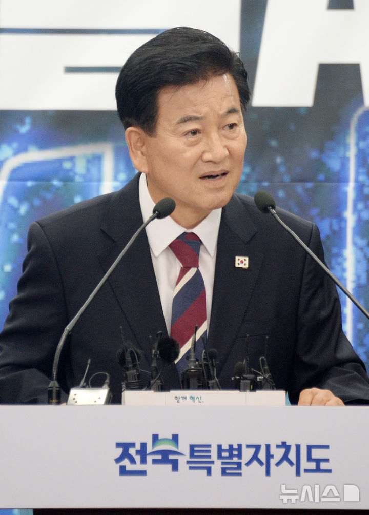 [전주=뉴시스] 김얼 기자 = 정동영 국회의원이 8일 전북 전주시 전북특별자치도청 기자회견장에서 열린 피지컬 AI 추경예산 확보 기자회견에 참석해 인사말을 하고 있다. 2025.07.08. [email protected]