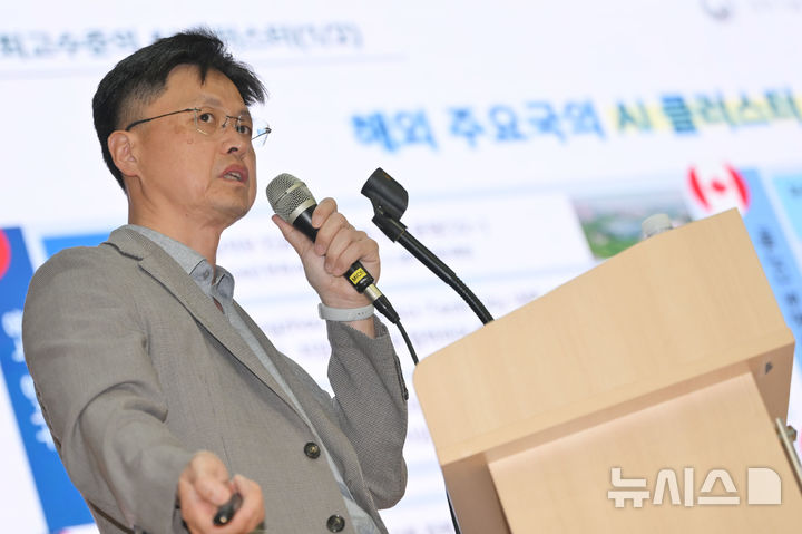 [광주=뉴시스] 이영주 기자 = 오상진 광주시 인공지능산업융합사업단장이 8일 오후 광주 동구 전일빌딩245에서 열린 '새정부에 바란다-광주의 미래, AI·모빌리티 정책포럼'에 참여해 'AI 넥서스 시티 광주, AX 실증밸리로 미래도시 구현'을 주제로 발표하고 있다. 2025.07.08. [email protected]