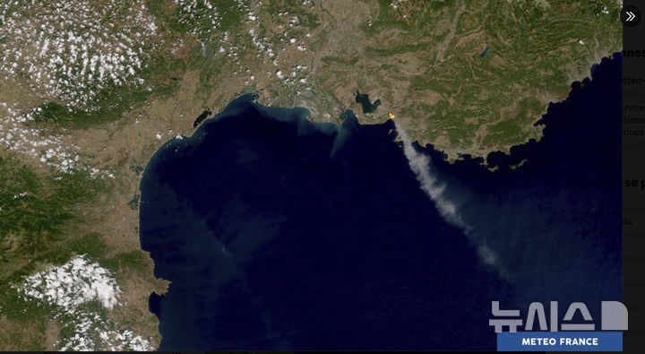 [마르세유=AP/뉴시스] 메테오 프랑스가 제공한 위성 사진에 8일(현지 시간) 프랑스 남부 마르세유 인근에서 발생한 산불로 연기가 피어오르고 있다. 산불이 확산하면서 마르세유 공항과 철도 운행이 중단됐으며 프랑스 기상청은 인근 지역에 적색경보를 발령했다. 2025.07.09.