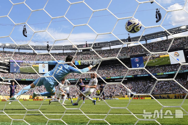 [이스트 러더퍼드=AP/뉴시스] 파리 생제르맹(PSG, 프랑스)의 곤살루 하무스가 9일(현지 시간) 미 뉴저지주 이스트 러더퍼드 메트라이프 스타디움에서 열린 2025 국제축구연맹(FIFA) 클럽 월드컵 준결승 레알 마드리드(스페인)와의 경기 후반 42분 팀 네 번째 골을 넣고 있다. 이날 이강인은 후반 35분 교체 출전해 하무스의 골에 기여했고 PSG는 4-0으로 승리하며 결승에 올라 첼시(잉글랜드)와 우승을 다툰다. 2025.07.10.