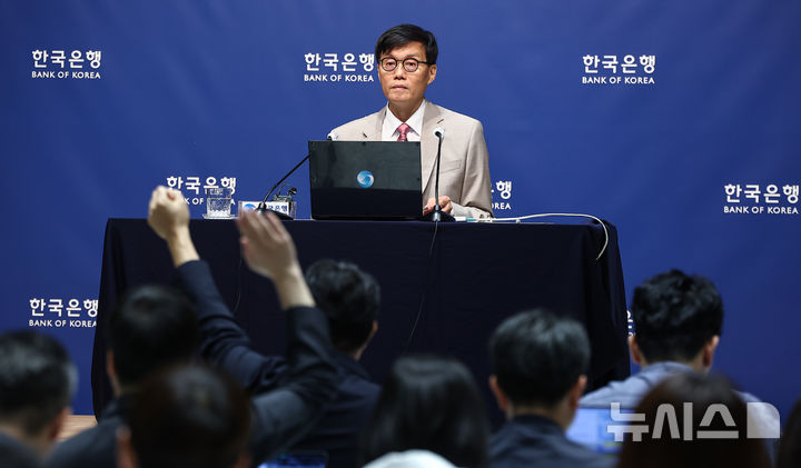 [서울=뉴시스] 사진공동취재단 = 이창용 한국은행 총재가 10일 서울 중구 한국은행에서 열린 금융통화위원회 금리 결정에 대한 기자간담회에서 취재진 질문을 받고 있다. 2025.07.10. [email protected]