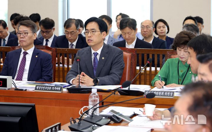 [서울=뉴시스] 조성봉 기자 = 김민재 행정안전부 장관 직무대행이 10일 오전 서울 여의도 국회에서 열린 행정안전위원회 전체회의에서 의원의 질의에 답변하고 있다.2025.07.10. [email protected]