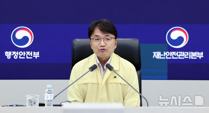 [세종=뉴시스] 강종민 기자 = 김광용 행정안전부 재난안전관리본부장이 10일 세종시 정부세종청사에서 열린 여름철 행사 등 다중운집인파 안전관리 관계기관 대책회의에서 기관별 인파관리 대책과 추진방안 등을 점검하고 있다. 2024.07.10. [email protected]