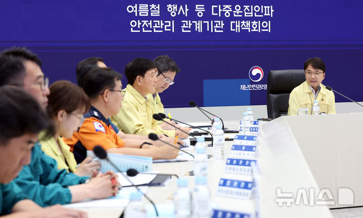 [세종=뉴시스] 강종민 기자 = 김광용 행정안전부 재난안전관리본부장이 10일 세종시 정부세종청사에서 열린 여름철 행사 등 다중운집인파 안전관리 관계기관 대책회의에서 기관별 인파관리 대책과 추진방안 등을 점검하고 있다. 2024.07.10. [email protected]