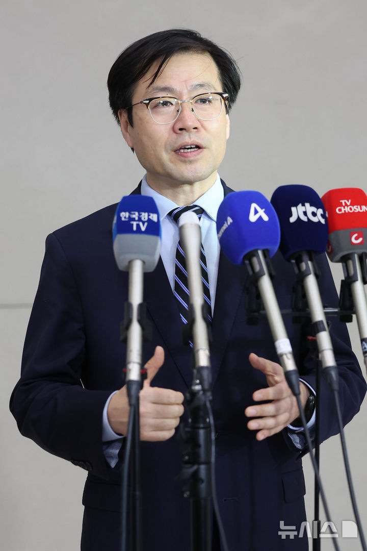 [인천공항=뉴시스] 권창회 기자 = 미국 트럼프 행정부와 통상 협상을 위해 출국했던 여한구 산업통상자원부 통상교섭본부장이 10일 인천국제공항 제2터미널을 통해 귀국해 취재진 질의에 답하고 있다. 2025.07.10. [email protected]