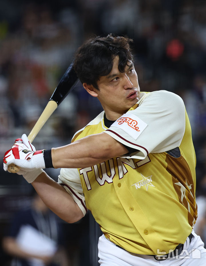 [대전=뉴시스] 최진석 기자 = 11일 대전 중구 대전한화생명볼파크에서 열린 2025 KBO리그 올스타 프라이데이 홈런더비 결승에서 LG 박동원이 타격하고 있다. 2025.07.11. [email protected]