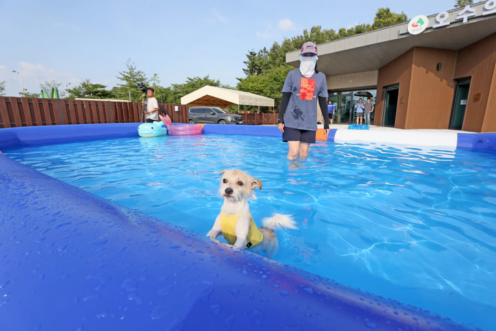 전북 임실에서 반려견과 함께 물놀이 즐기는 시민들