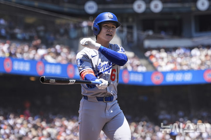 [샌프란시스코=AP/뉴시스] LA 다저스의 김혜성이 12일(현지 시간) 미 캘리포니아주 샌프란시스코 오라클 파크에서 열린 2025 메이저리그 샌프란시스코 자이언츠와의 경기 2회 초 삼진으로 물러나고 있다. 김혜성은 4타수 1안타 1타점 2삼진을 기록했고 다저스는 2-1로 승리했다. 2025.07.13.