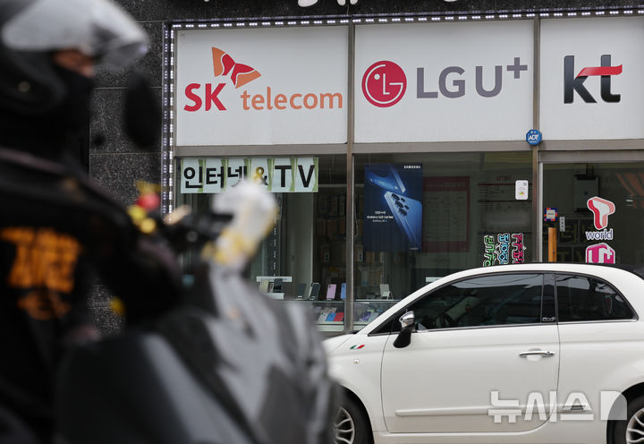 [서울=뉴시스] 배훈식 기자 = SK텔레콤 사이버 침해 사고 위약금 면제 기한이 하루 앞으로 다가온 13일 서울 서대문구의 한 휴대전화 판매점에 이동통신 3사 로고가 붙어 있다. 이번 사고로 촉발된 이통 3사간의 고객유치전이 막바지로 치달으며 보조금 경쟁 등 과열양상을 띄고 있다. 2025.07.13. [email protected]
