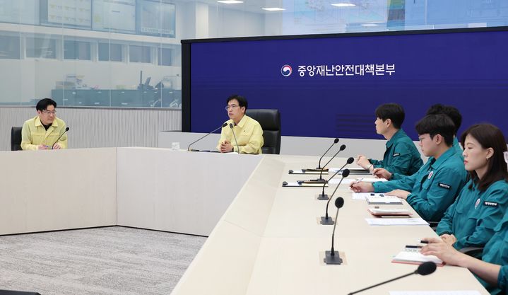 [서울=뉴시스] 황준선 기자 = 김민재 행정안전부장관 직무대행이 13일 밤 정부세종청사 중앙재난안전상황실에서 전라·경상권 호우대처상황 점검회의를 주재하고 있다. (사진=행정안전부 제공) 2025.07.13. [email protected] *재판매 및 DB 금지