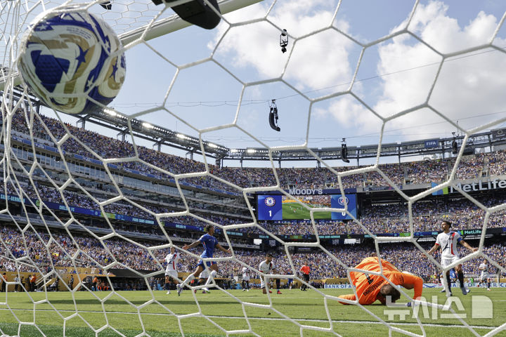 [이스트 러더퍼드=AP/뉴시스] 첼시(잉글랜드)의 콜 파머가 13일(현지 시간) 미 뉴저지주 이스트 러더퍼드의 메트라이프 스타디움에서 열린 2025 국제축구연맹(FIFA) 클럽 월드컵 결승전 파리 생제르맹(PSG, 프랑스)과의 경기 전반 30분 멀티 골을 기록하고 있다. 파머는 2골 1도움을 기록하며 첼시의 3-0 완승과 우승을 이끌었다. 2025.07.14.