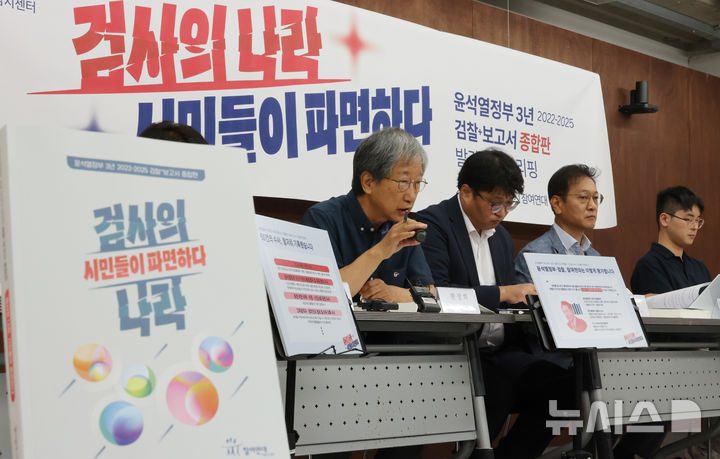 [서울=뉴시스] 김명원 기자 = 참여연대가 14일 오전 서울 종로구 참여연대에서 “검사의 나라, 시민들이 파면하다” 윤석열정부 3년 2022-2025 검찰 보고서 종합판 발간 기자브리핑을 하고 있다.  2025.07.14. [email protected]
