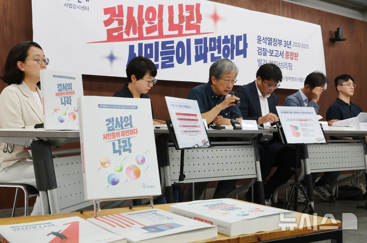 [서울=뉴시스] 김명원 기자 = 참여연대가 14일 오전 서울 종로구 참여연대에서 “검사의 나라, 시민들이 파면하다” 윤석열정부 3년 2022-2025 검찰 보고서 종합판 발간 기자브리핑을 하고 있다. 2025.07.14. [email protected]