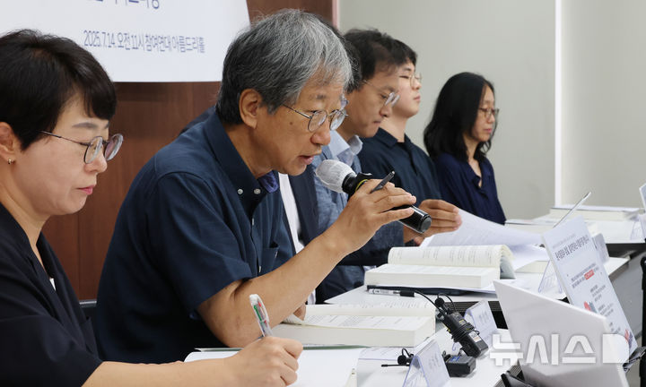 [서울=뉴시스] 김명원 기자 = 참여연대가 14일 오전 서울 종로구 참여연대에서 “검사의 나라, 시민들이 파면하다” 윤석열정부 3년 2022-2025 검찰 보고서 종합판 발간 기자브리핑을 하고 있다. 2025.07.14. [email protected]
