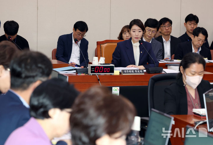 [서울=뉴시스] 고승민 기자 = 강선우 여성가족부 장관 후보자가 14일 서울 여의도 국회에서 열린 여성가족위원회의 인사청문회에서 의원 질의에 답하고 있다. 2025.07.14. [email protected]
