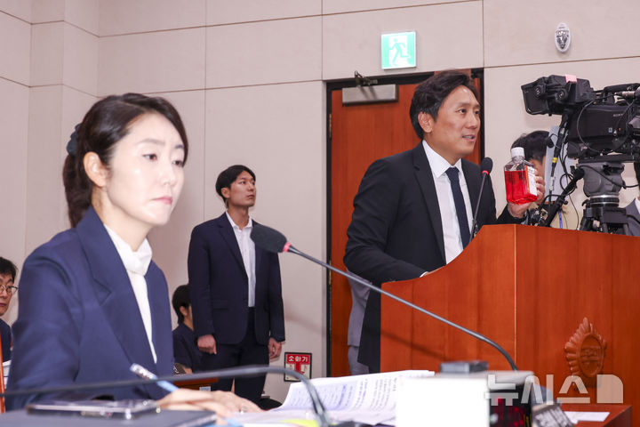 [서울=뉴시스] 고승민 기자 = 이의일 엑셀세라퓨틱스 대표가 14일 서울 여의도 국회에서 열린 강선우 여성가족부 장관 후보자 인사청문회에서 의원 질의에 답하고 있다. 2025.07.14. [email protected]