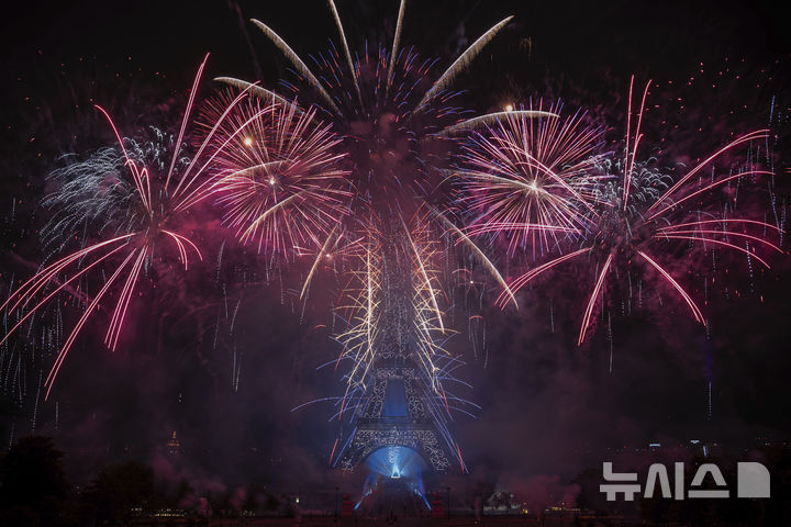 [파리=AP/뉴시스] 14일(현지 시간) 프랑스 파리 에펠탑 주변 상공에서 '바스티유 데이'를 기념하는 불꽃놀이가 밤하늘을 수놓고 있다. 바스티유 데이는 1789년 7월 14일, 당시 루이 16세 국왕의 실정에 불만을 품은 파리 시민들이 정치범 수용소인 바스티유 감옥을 함락시킨, 프랑스 혁명의 막이 오른 것을 기념하는 날이다. 2025.07.15.