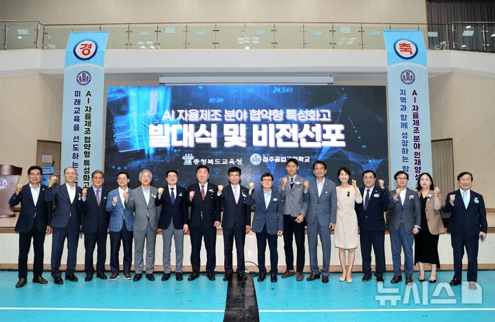 [청주=뉴시스] 김재광 기자 = 15일 충북 청주공업고등학교 강당에서 열린 '협약형 특성화고 발대식' 참석자들이 파이팅을 외치고 있다.(사진=충북교육청 제공)[email protected]