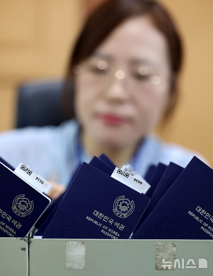 [대구=뉴시스] 이무열 기자 = 본격적인 여름 휴가철을 앞두고 여권발급 신청이 늘어나고 있는 15일 대구 달서구 달서구청 여권민원실에서 직원이 발급된 여권을 정리하고 있다. 2025.07.15. [email protected]