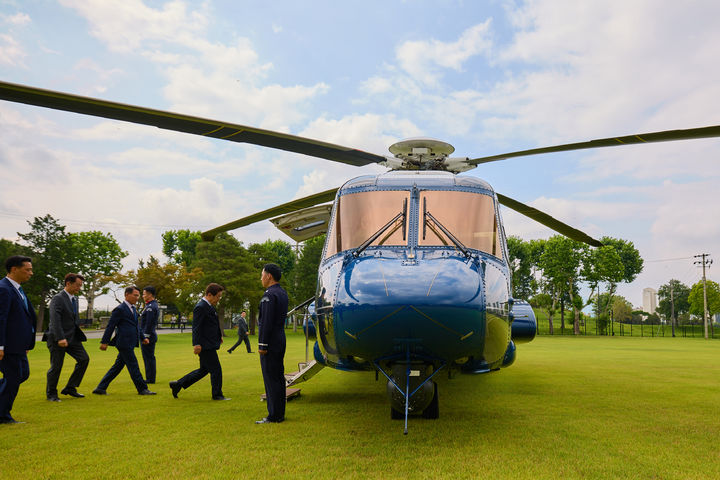 [서울=뉴시스] 대통령실은 이재명 대통령이 용산에서 지방으로 이동하기 위해 헬기에 탑승하는 모습을 15일 SNS에 공개했다. (사진=대통령실 제공) 2025.07.15. [email protected] *재판매 및 DB 금지