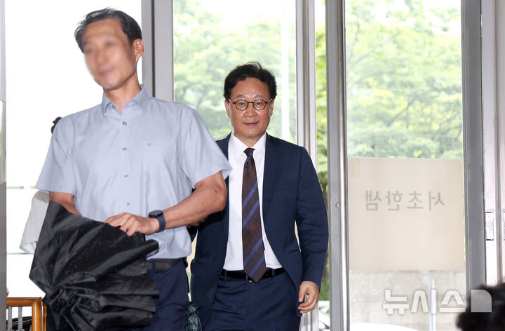 [서울=뉴시스] 김선웅 기자 = 왕윤종 전 국가안보실 경제안보비서관이 15일 서울 서초구 소재 순직해병 특검 사무실에 이른바 'VIP 격노설'과 관련해 참고인 신분으로 조사를 받기 위해 출석하고 있다. 2025.07.15. [email protected]