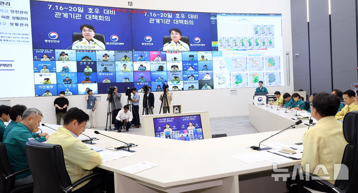[세종=뉴시스] 강종민 기자 = 김광용 행정안전부 재난안전관리본부장이 14일 세종시 정부세종청사에서 열린 호우 대비 관계기관 대책회의에서 발언하고 있다. 2024.07.15. [email protected]