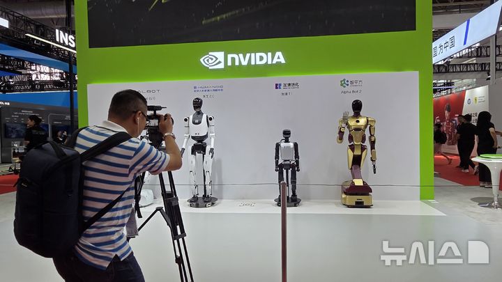 [베이징=뉴시스] 박정규 특파원 = 16일 중국 베이징 중국국제전람센터에서 열린 제3회 중국국제공급망촉진박람회에 마련된 엔비디아 부스에 로봇 제품들이 전시돼있다. 엔비디아는 공급망박람회에 이번에 처음 참가했다. 2025.07.16 [email protected]