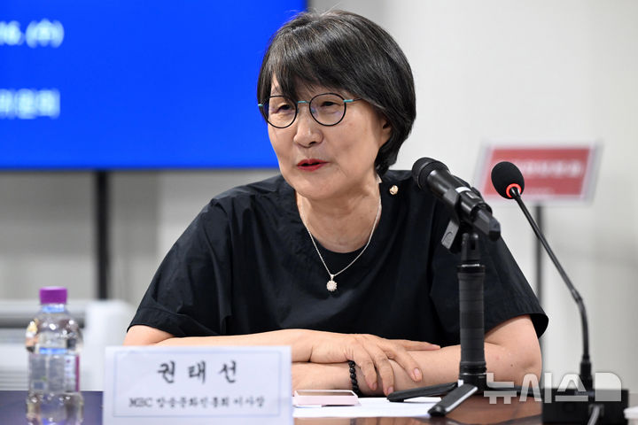 [서울=뉴시스] 추상철 기자 = 권태선 MBC방송문화진흥회 이사장이 16일 오전 서울 종로구 국정기획위원회에서 열린 '미디어혁신범국민협의체(가칭) 추진을 위한 의견수렴 간담회'에서 인사말을 하고 있다. (공동취재) 2025.07.16. [email protected]