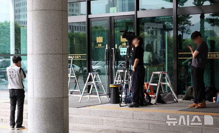 [서울=뉴시스] 조성우 기자 = 재구속 이후 내란 특검 소환 조사에 불응하고 있는 윤석열 전 대통령 측이 법원에 구속적부심사를 청구한 16일 내란 특검 사무실이 마련된 서울 서초구 서울고등검찰청 앞에 취재진 장비가 놓여 있다. 2025.07.16. [email protected]