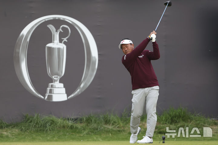 [포트러시=AP/뉴시스] 최경주가 17일(현지 시간) 북아일랜드 포트러시의 로열 포트러시 골프클럽에서 열린 제153회 디오픈(브리티시오픈) 1번 홀에서 티샷하고 있다. 2025.07.17.