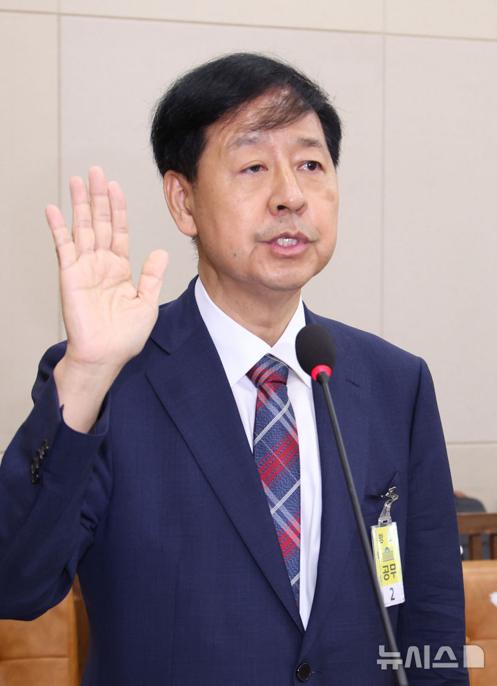 [서울=뉴시스] 김금보 기자 = 구윤철 경제부총리 겸 기획재정부 장관 후보자가 17일 서울 여의도 국회 기획재정위원회에서 열린 인사청문회에서 선서를 하고 있다. 2025.07.17. [email protected]