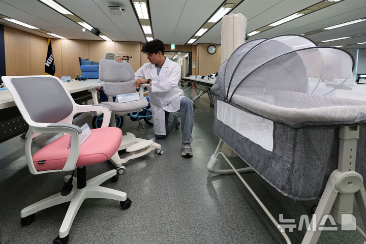 [서울=뉴시스] 권창회 기자 = 17일 서울 서초구 한국제품안전관리원에서 2025년 정기 3차 안전성조사 부적합제품이 공개되고 있다. 산업통상자원부 국가기술표준원은 63개 품목, 1,082개 제품에 대해 안전성 조사를 실시한 결과 안전기준에 부적합한 53개 제품에 대해 수거 등의 명령(리콜명령) 조치를 내렸다고 밝혔다. 2025.07.17. [email protected]