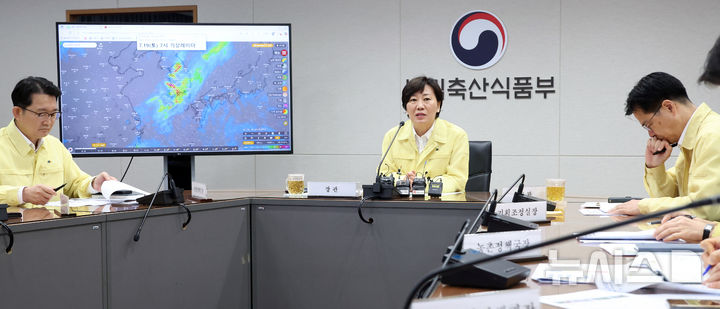 [세종=뉴시스] 강종민 기자 = 송미령 농림축산식품부 장관이 18일 세종시 정부세종청사에서 열린 호우 대처상황 긴급 점검회의에서 피해 현황과분야별 대응, 조치계획을 점검하고 있다. 2025.07.18. [email protected]