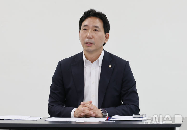[서울=뉴시스] 김명원 기자 = 이정헌 국정기획위원회 경제2분과 기획위원이 18일 오전 서울 종로구 정부서울청사 창성동 별관 국정기획위원회에서 열린 전세사기 피해자 간담회에 참석해 발언하고 있다. 2025.07.18. [email protected]