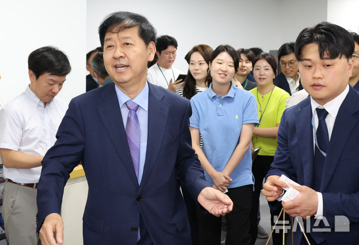 [세종=뉴시스] 강종민 기자 = 구윤철 부총리 겸 기획재정부 장관이 21일 세종시 정부세종청사 출입기자실을 방문, 질문에 답한 뒤 기자실을 나서고 있다. 2025.07.21. [email protected]