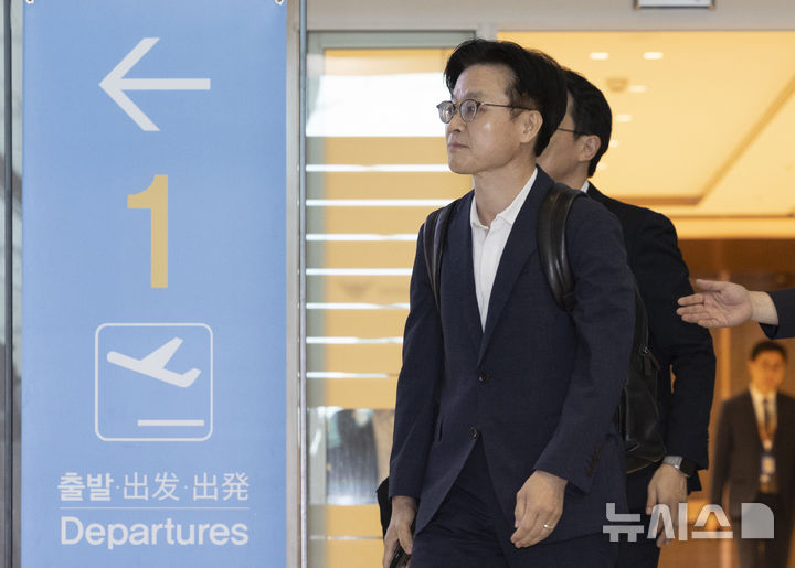[인천공항=뉴시스] 김근수 기자 = 김정관 산업통상자원부 장관이 23일 인천국제공항 제2여객터미널에서 대미 통상 협상을 위해 출국장으로 향하고 있다. 2024.07.23. [email protected]