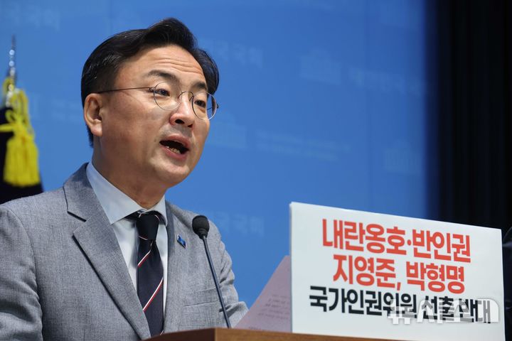 [서울=뉴시스] 조성봉 기자 = 신장식 조국혁신당 의원이 23일 서울 여의도 국회 소통관에서 열린 '내란옹호 반인권 지영준, 박형명 국가인권위원 선출반대' 기자회견에서 발언을 하고 있다. 2025.07.23. [email protected]