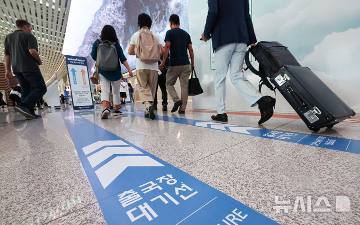 [인천공항=뉴시스] 권창회 기자 = 본격적인 여름 휴가철이 시작된 24일 인천국제공항 제2여객터미널 출국장이 여행객들로 붐비고 있다. 2025.07.24. [email protected]