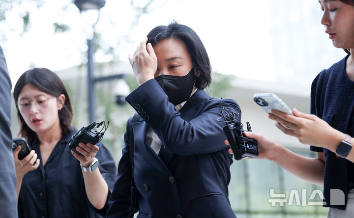 [서울=뉴시스] 김선웅 기자 = 김건희 여사 최측근으로 알려진 유경옥 전 행정관이 25일 서울 종로구 소재 김건희 특검팀(특별검사 민중기)에서 피의자 신분으로 조사를 받기 위해 출석하고 있다. 2025.07.25. [email protected]
