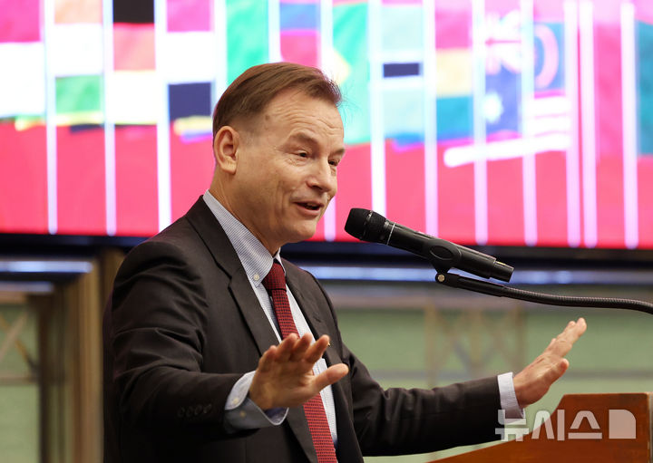 [서울=뉴시스] 조성우 기자 = 게오르크 빌프리드 슈미트 주한독일대사가 25일 오전 서울 서대문구 스위스 그랜드 호텔에서 열린 '2025 한국국제모의유엔'에서 기조연설을 하고 있다. 2025.07.25. [email protected]