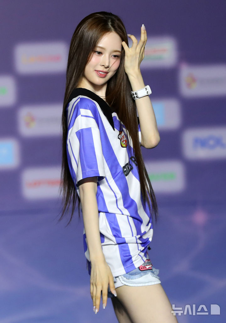 [고양=뉴시스] 김혜진 기자 = 그룹 이즈나 방지민이 26일 오후 경기 고양 일산서구 킨텍스에서 열린 2025 SBS 가요대전 써머(Summer) 블루카펫에서 포즈를 취하고 있다.