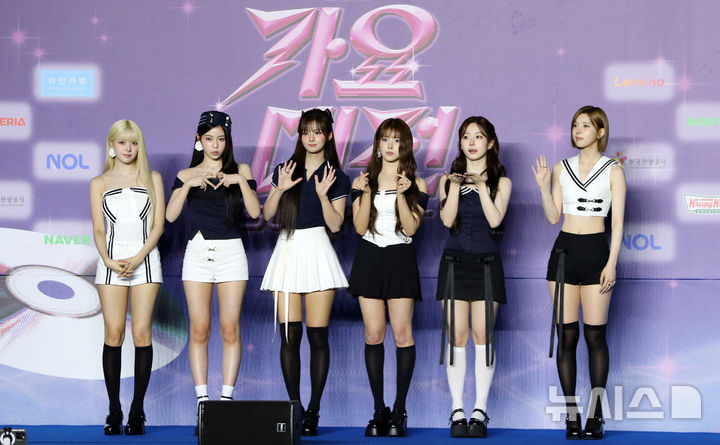 [고양=뉴시스] 김혜진 기자 = 그룹 엔믹스가 26일 오후 경기 고양 일산서구 킨텍스에서 열린 2025 SBS 가요대전 써머(Summer) 블루카펫에서 포즈를 취하고 있다.