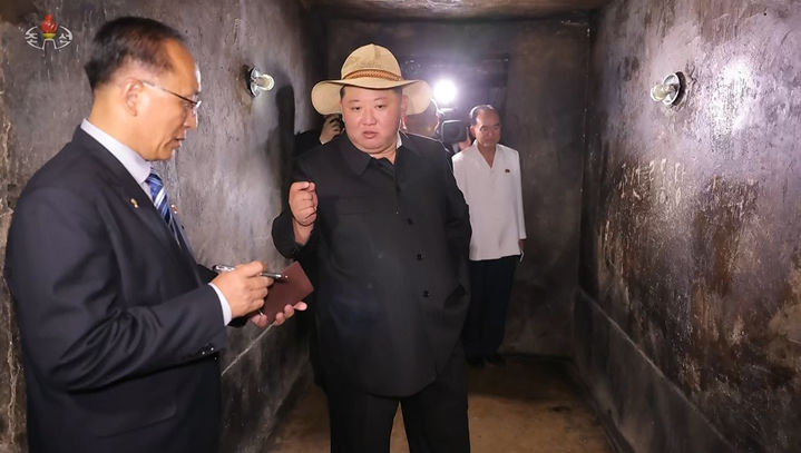 [서울=뉴시스] 김정은 국무위원장이 지난 24일 당·정부, 무력기관의 지도간부들과 함께 '반제계급교양의 거점'인 신천계급교양관을 돌아봤다고 조선중앙TV가 26일 보도했다. 김 위원장은 신천계급교양관의 전시실들과 사백어머니묘, 백둘어린이묘, 군당방공호, 화약창고 등 여러 곳을 둘러봤다. (사진= 조선중앙통신 캡쳐) 2025.07.26. [email protected] *재판매 및 DB 금지