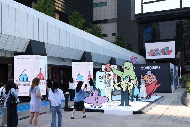 [서울=뉴시스] 삼성전자는 아티스트 '장 줄리앙(Jean Jullien)'과 협업해 대규모 갤럭시 폴더블폰 체험존 'The Galaxy UNFOLDERS'를 7월 25일부터 8월 17일까지 서울 코엑스에서 운영 한다고 27일 밝혔다. 사진은 서울 강남구 코엑스에 오픈한 '갤럭시 Z 폴드7Z 플립7'과 아티스트 '장 줄리앙(Jean Jullien)'의 협업 체험존 'The Galaxy UNFOLDERS'.(사진=삼성전자 제공) 2025.07.27. [email protected] *재판매 및 DB 금지